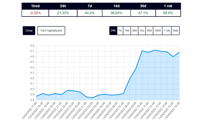 Dzięki tej wiadomości kryptowaluta KNC może odnieść wielki sukces. Dziś wartość tokena wzrosła o ponad 23%. Dodatkowo, wolumen obrotu jest bardzo wysoki - z prawie 650 mln USD w rękach KNC, wolumen wzrósł o ponad 200% w porównaniu z dniem wczorajszym.