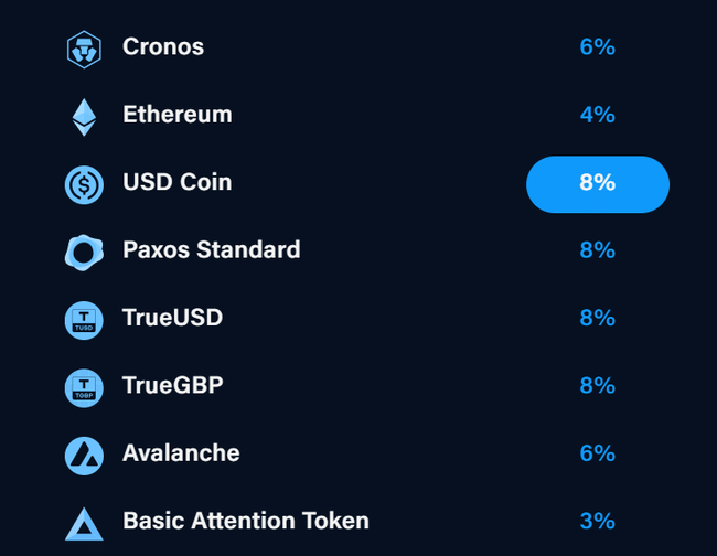 Kiedy masz dodatkową gotówkę, nie musisz od razu inwestować, możesz przenieść swoje pieniądze do jednego z stablecoinów, na przykład $USDTUSD $USDCUSD . Może to być dowolny stablecoin. Czy chcesz mieć stablecoin, który przynosi największe zyski, czy taki, w którym możesz wygodnie zostawić swoje pieniądze na krótki okres czasu?
