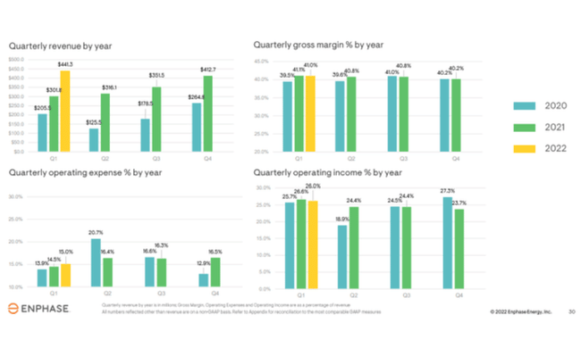 - Wzrost przychodów i zysków firmy Enphase jest coraz szybszy, a doskonałe wyniki w ostatnim kwartale pokazują, że firma doskonale radzi sobie z zarządzaniem ograniczeniami w łańcuchu dostaw.