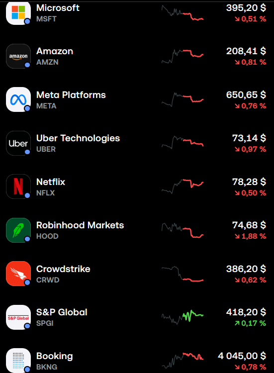 Cześć, ładna lista. Ja dokupuję - SPGI, MSFT, dalej zgadzam się z META, AMZN i UBER, ale AMZN nie chcę, bo wystarczą mi 3 z MAG7, i bardzo interesowałaby mnie analiza BKNG, bo taka spółka pasowałaby do mojego portfela, ale jeszcze się temu nie przyjrzałem. Spadek tam jest całkiem spory. CRWD moim zdaniem nadal drogie, tam mam tylko FTNT i PANW — gdyby jeszcze spadły, mogłyby być ciekawe. NFLX mi się nie podoba, UBER jednak rozważam, Robinhood chyba wciąż drogi. Podoba mi się też SOFI, ale tam chciałbym jeszcze niższą cenę wejścia.