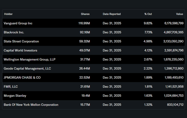 Vanguard Group z udziałem wynoszącym około 9,8 proc.