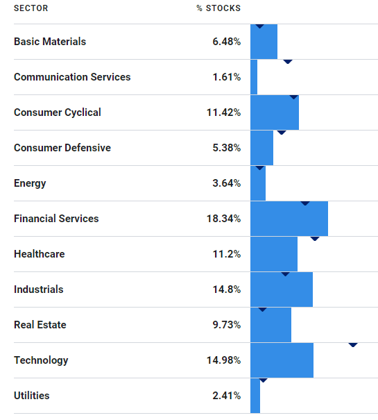 Ze statystyk wyraźnie widać dywersyfikację funduszu, największy udział mają usługi finansowe, następnie technologia i przemysł z prawie 15% reprezentacją, także sektor konsumencki, niezbędna opieka zdrowotna i nieruchomości....
