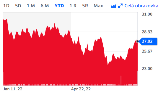Jak widzimy, obecna cena to ok. 27$ (cena notowań ok. 30$), więc może to być ciekawe wejście, a także widzimy, że ten ETF nie jest tak podatny na niekorzystne wydarzenia na świecie, jak mogą być poszczególne akcje.