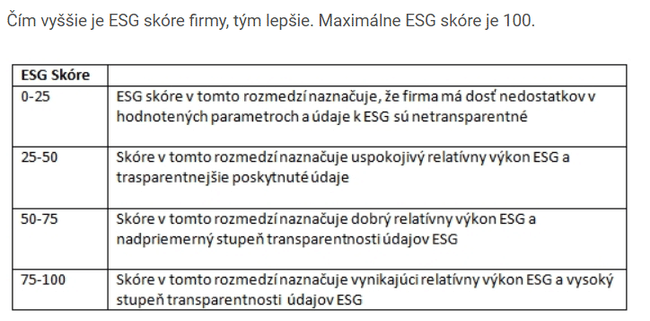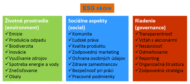 To skrót od trzech słów: Environment, Social and Governance, czyli: środowisko , społeczeństwo i zarządzanie. Spółki, które szczycą się wysokim ESG, dbają o ochronę środowiska, zachowują się odpowiedzialnie wobec pracowników i partnerów biznesowych, a także dbają o jakość ładu korporacyjnego. Firmy z wysokimi wynikami = firmy zrównoważone. Na świecie jest ponad dziesięć tysięcy firm, które mają ten ranking, większość z nich w Ameryce. Punktacja jest obliczana na podstawie danych, które są publicznie dostępne, np. raportów rocznych. Istnieje metodologia obliczania wyniku, która uwzględnia kilka czynników.
