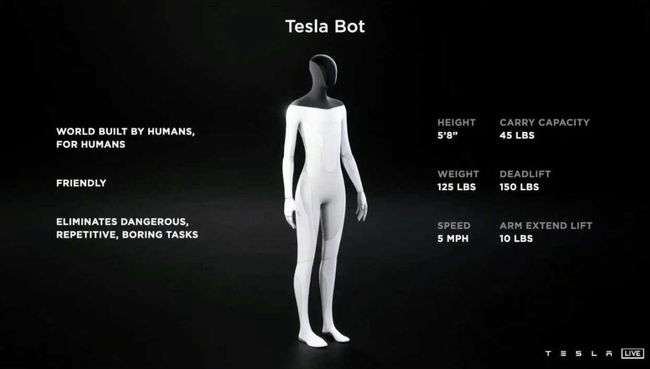 Musk zadebiutował "Tesla Bot" w sierpniu przy użyciu człowieka w kombinezonie robota 😅 i ostrzegł podczas firmy "AI Day" , że "prawdopodobnie nie będzie działać", ale dodał, że ma nadzieję mieć pierwszy prototyp się i działa do przyszłego roku.