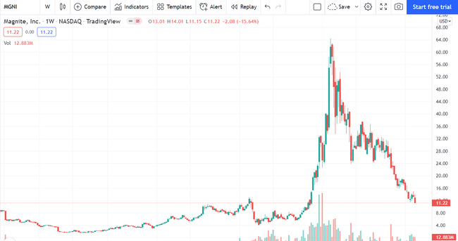 Z akcji notowanych na 11,23 dolarów, cyfrowa firma reklamowa stanowi doskonałą okazję inwestycyjną dla mniej niż 20 dolarów. Magnite jest największą niezależną platformą reklamową typu sell-side (pomagającą tym, którzy mają dostępną powierzchnię reklamową, wypełnić ją reklamami). Magnite, działając głównie w obszarze connected TV (CTV), korzysta z dobrodziejstw stale rozwijającej się przestrzeni telewizyjnej.