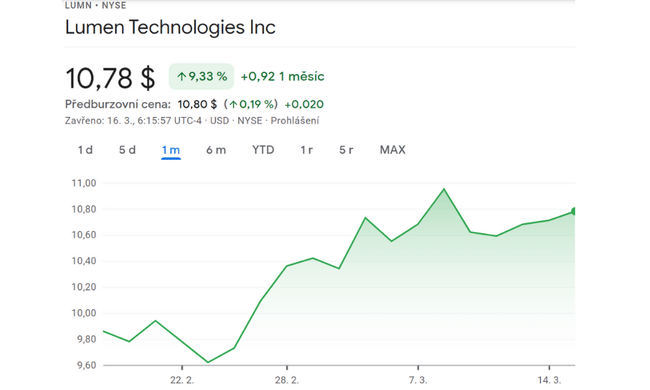 Lumen Technologies $LUMN jest firmą technologiczno-komunikacyjną, która świadczy usługi dla konsumentów i firm na całym świecie. Oferuje zintegrowaną platformę, która łączy zasoby sieciowe, łączność w chmurze, rozwiązania bezpieczeństwa oraz narzędzia do komunikacji głosowej i współpracy, aby pomóc firmom w wykorzystaniu danych i zastosowaniu technologii nowej generacji. Jest także członkiem indeksów Standard and Poor's 500 (S&P 500) i Fortune 500.