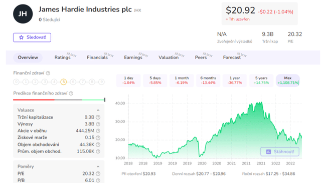 James Hardie Industries $JHX to globalna firma, która specjalizuje się w produkcji materiałów budowlanych. Jej produkty obejmują materiały budowlane z cementu włóknistego, takie jak płytki, podłogi, pokrycia dachowe i rury. Firma działa głównie w Ameryce Północnej, Europie, Azji i Pacyfiku, a jej siedziba znajduje się w Dublinie w Irlandii.